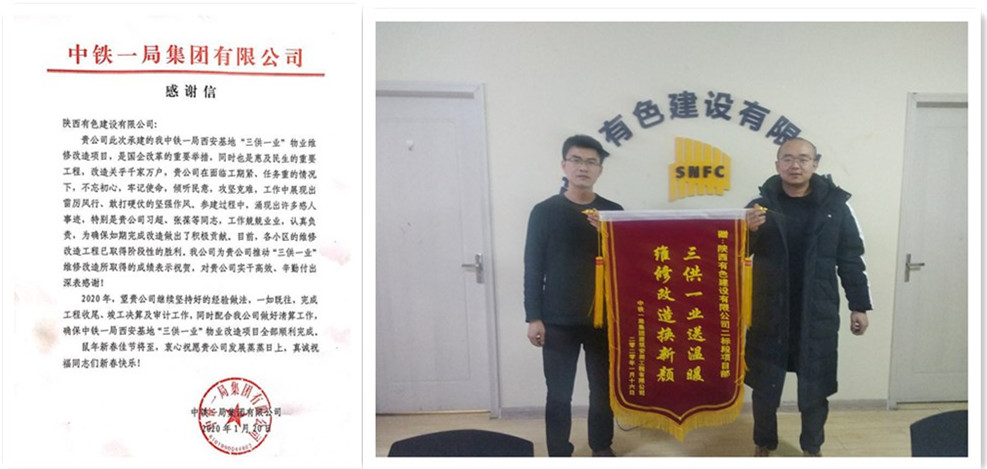 近日,公司收到建設單位中鐵一局集團有限公司發(fā)來的感謝信,感謝公司在“三供一業(yè)”物業(yè)維修改造項目實施中,面對時間緊、任務重的情況,項目部人員攻堅克難、雷厲風行、實干高效、敢打硬仗,順利完成各小區(qū)的維修改造工程,取得了階段性的勝利,希望公司再接再厲,一如既往堅持好的經驗做法,確保所有工作全部順利完成。