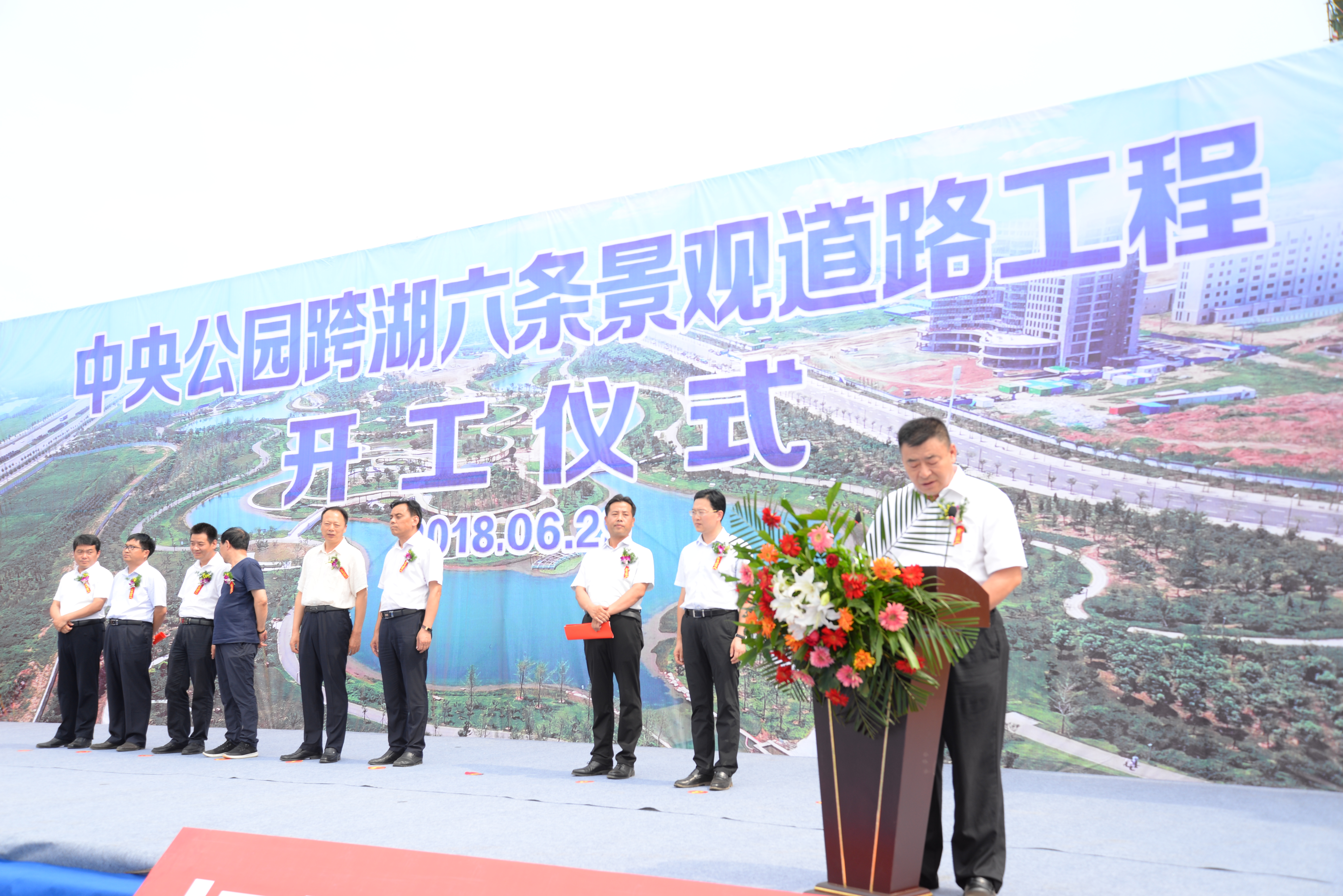 隨著張留華主任宣布“開工”,鞭炮和禮炮齊鳴,中央公園跨湖六條景觀道路工程開工儀式順利結(jié)束。