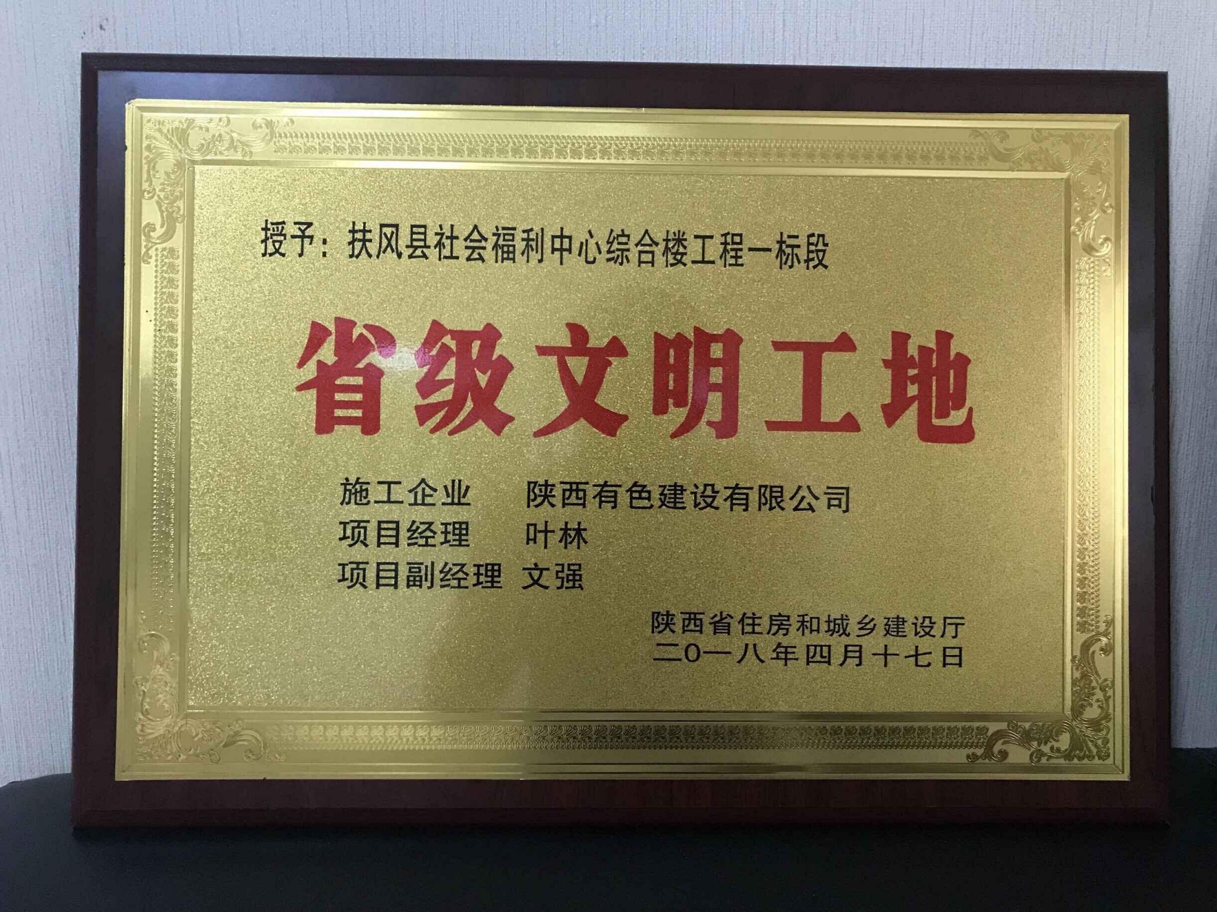 近日,從陜西省住建廳傳來(lái)喜訊,陜西有色建設(shè)有限公司承建的扶風(fēng)縣社會(huì)福利中心綜合樓一標(biāo)段工程榮獲“2018年度省級(jí)文明工地”稱(chēng)號(hào)。