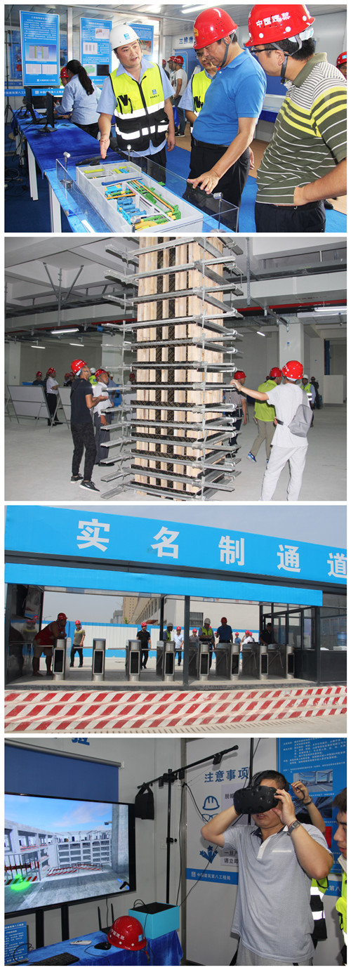 觀摩人員先后參觀了辦公生活區(qū)、安全體驗區(qū)、“互聯網+”體驗中心、BIM+VR+3D打印大數據中心和生產區(qū)。其中:云筑網建筑工人實名制管理平臺、“互聯網+質量/安全/物資”展示、BIM深化設計、VR安全教育體驗、3D打印建筑模型、AR圖紙識別技術、方圓扣自鎖模板、鋼筋綁扎定位、定型化工具式通道等施工亮點引人關注。