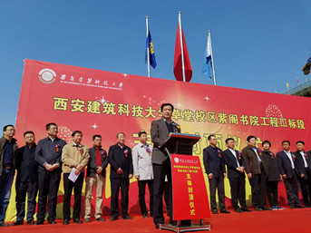 侯院長首先作了致辭。他向項目部表達了祝賀,并就草堂校區(qū)建筑風格作了簡要介紹。草堂校區(qū)建筑風格主要承襲了秦漢建筑風格,并加以現(xiàn)代建筑元素。紫閣書院由已故大師王陜生設計,在規(guī)劃設計時承襲了中國傳統(tǒng)書院的九宮格布局格式,強調(diào)建筑與環(huán)境的互相融合。本次設計還融入了靜、園、交、和、傳的設計理念,體現(xiàn)了尊重自然,天人合一的思想。