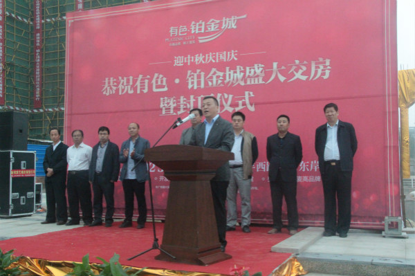 9月30日,由有色置業(yè)開發(fā)、有色陜建承建的有色鉑金城迎來了34、35、43#樓交房暨33、44#樓盛大封頂儀式。戶縣濱河新區(qū)管理辦公室、陜西有色建設(shè)有限公司、陜西有色萬通建材有限公司、陜西有色置業(yè)有限公司相關(guān)領(lǐng)導(dǎo),有色鉑金城各參建單位及新老客戶蒞臨會(huì)場(chǎng),共襄盛舉,活動(dòng)現(xiàn)場(chǎng)禮炮齊鳴,鑼鼓喧天,氣氛熱烈濃郁。